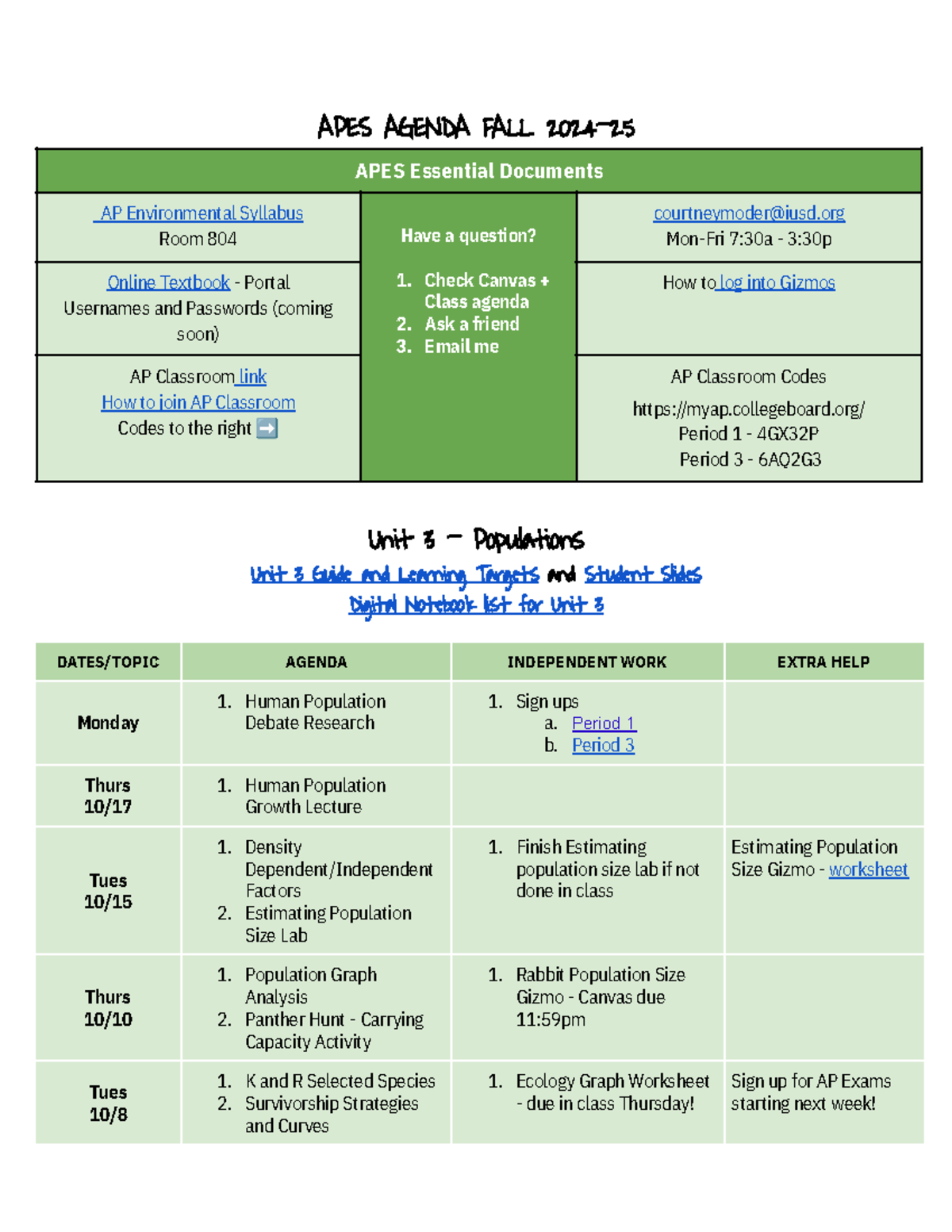 AP Enviro FALL Agenda 2024 25 APES AGENDA FALL 2024 APES Essential