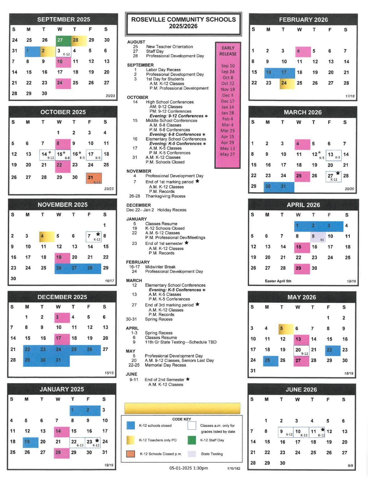 Roseville Community Schools MI Calendar 25 26 Revised EduCounty