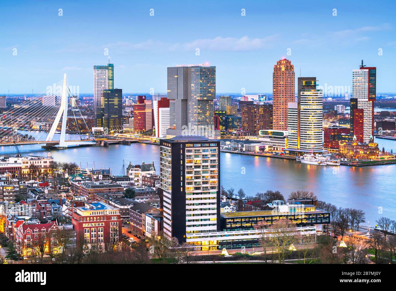 Rotterdam Netherlands city skyline at twilight Stock Photo Alamy