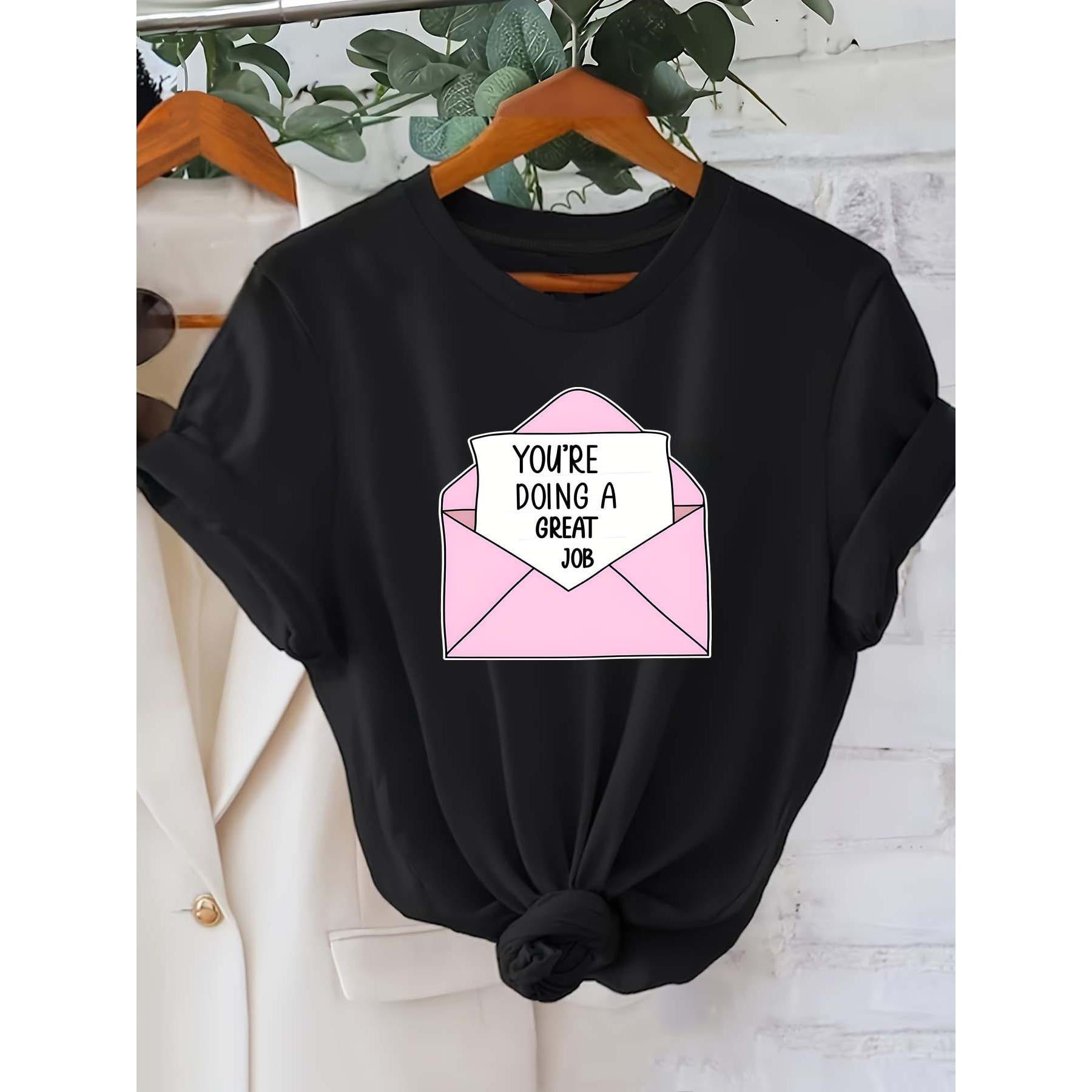 Casual Graphic Tee Tops Has Envelope Pattern Round Neck Regular Fit T