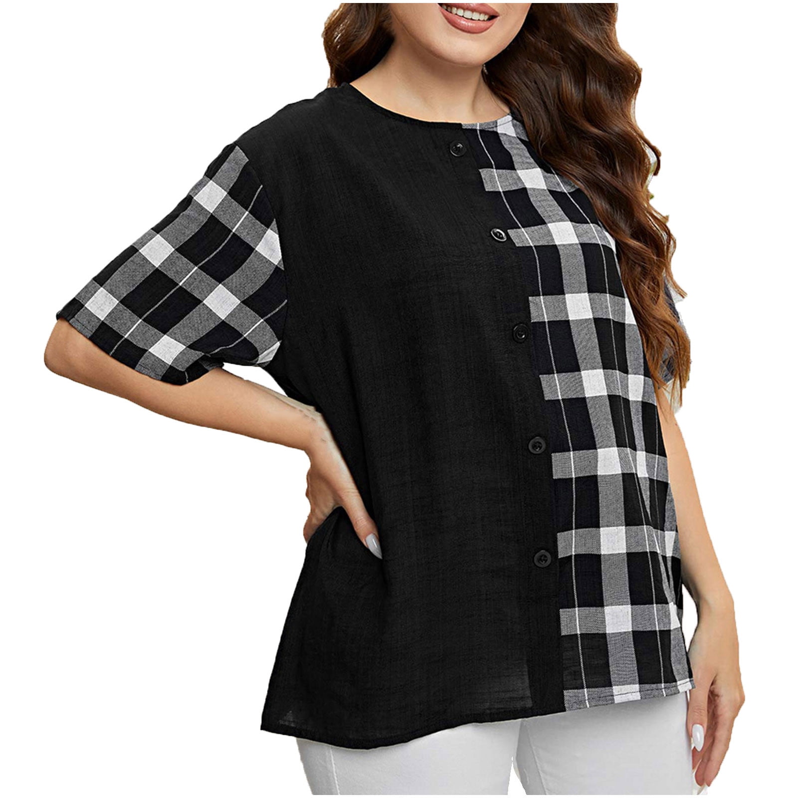 Fashion Women #39 s Casual Short Sleeve Round Neck Plus Size Print Button