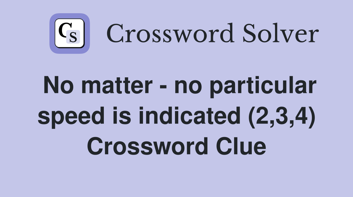 No matter no particular speed is indicated (2 3 4) Crossword Clue