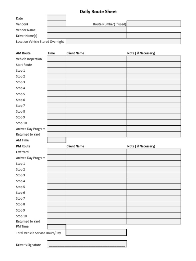 Daily Route Sheet Template PDF