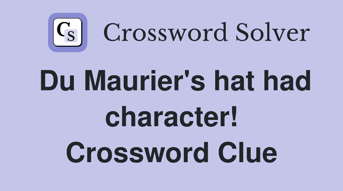 Du Maurier #39 s hat had character Crossword Clue Answers Crossword Solver