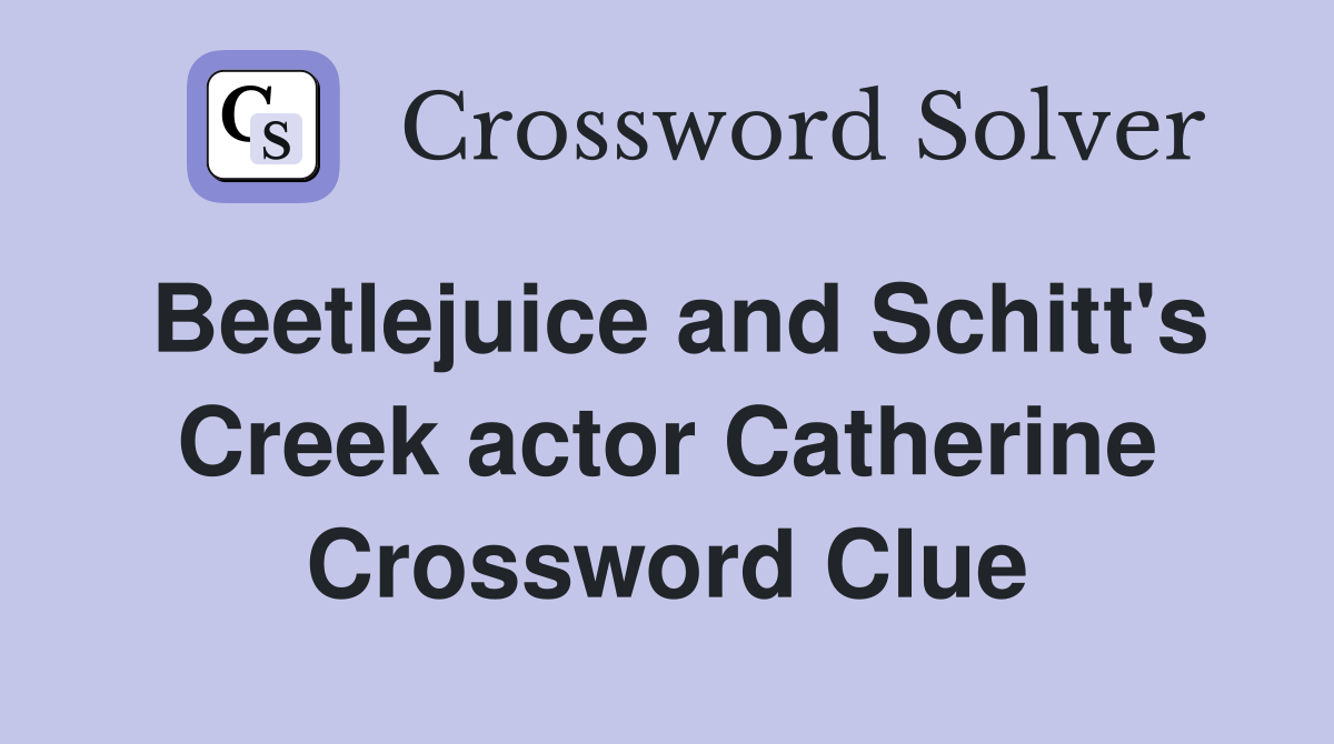 Beetlejuice and Schitt #39 s Creek actor Catherine Crossword Clue Answers