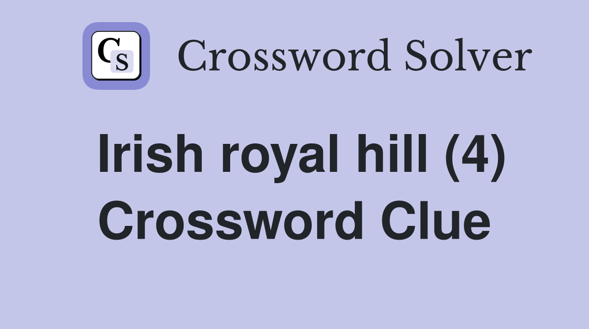 Irish royal hill (4) Crossword Clue Answers Crossword Solver