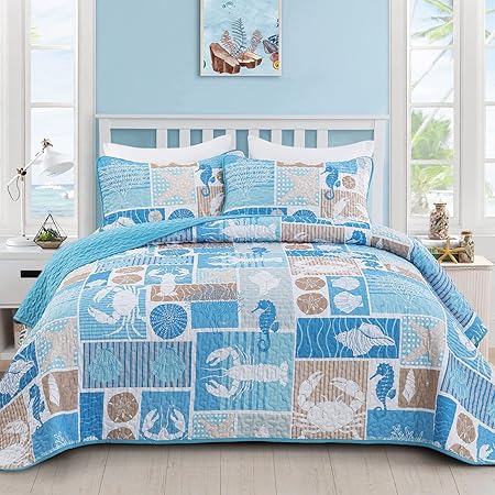 Amazon com: Tritard 3 Piece Coastal Quilt Sets Twin Size Reversible