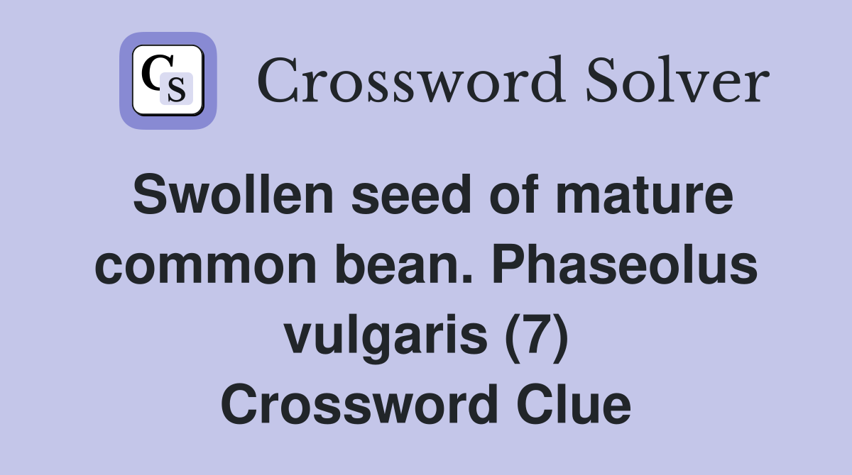 Swollen seed of mature common bean Phaseolus vulgaris (7) Crossword