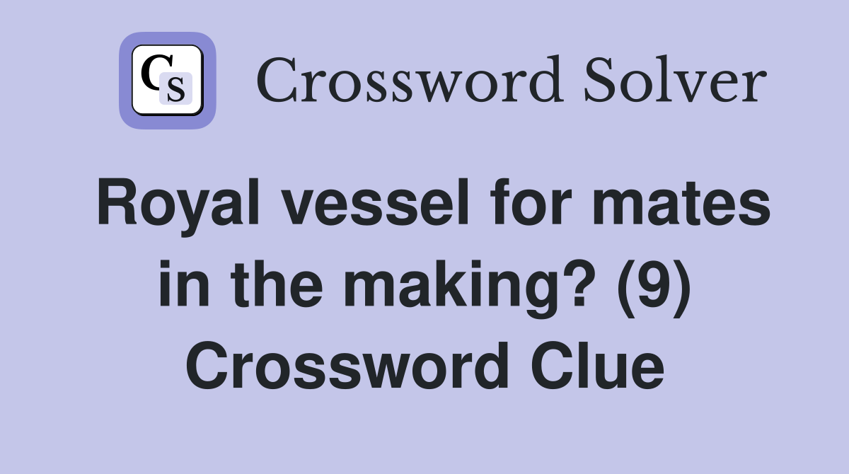 Royal vessel for mates in the making? (9) Crossword Clue Answers