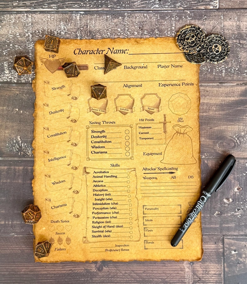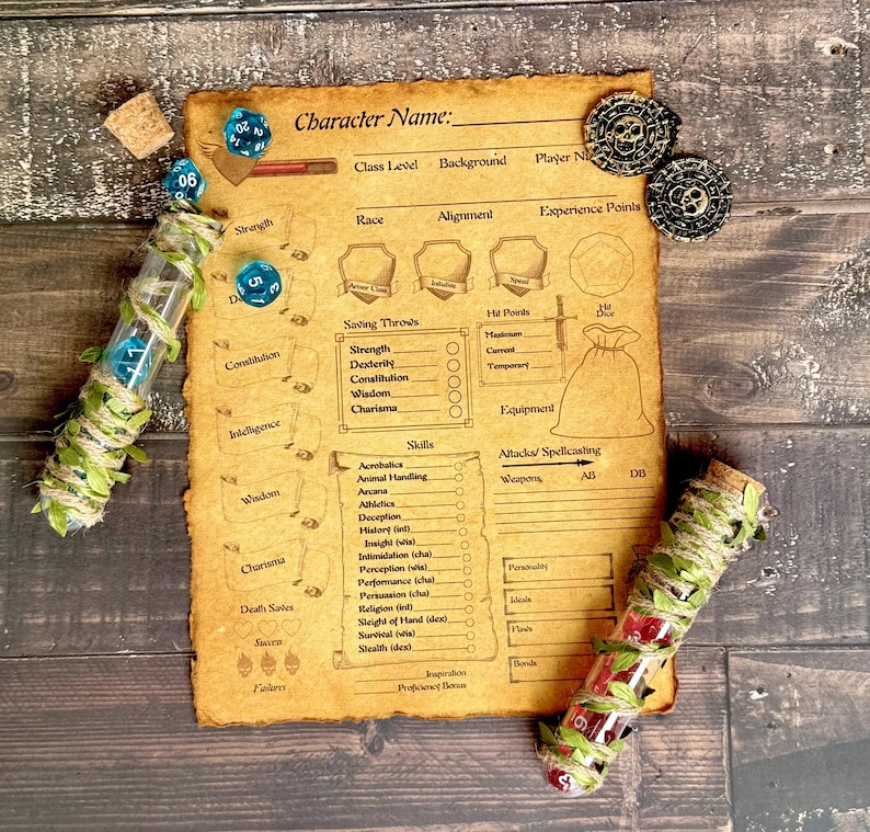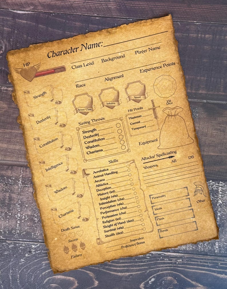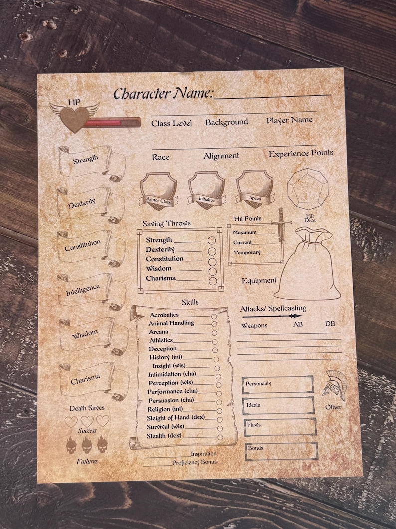 Printable DND Character Sheet: Parchment Design RPG Template (digital