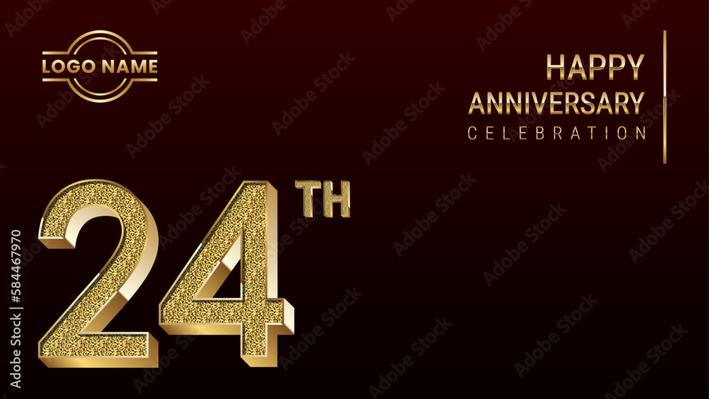 24th Anniversary template design concept with golden number Vector