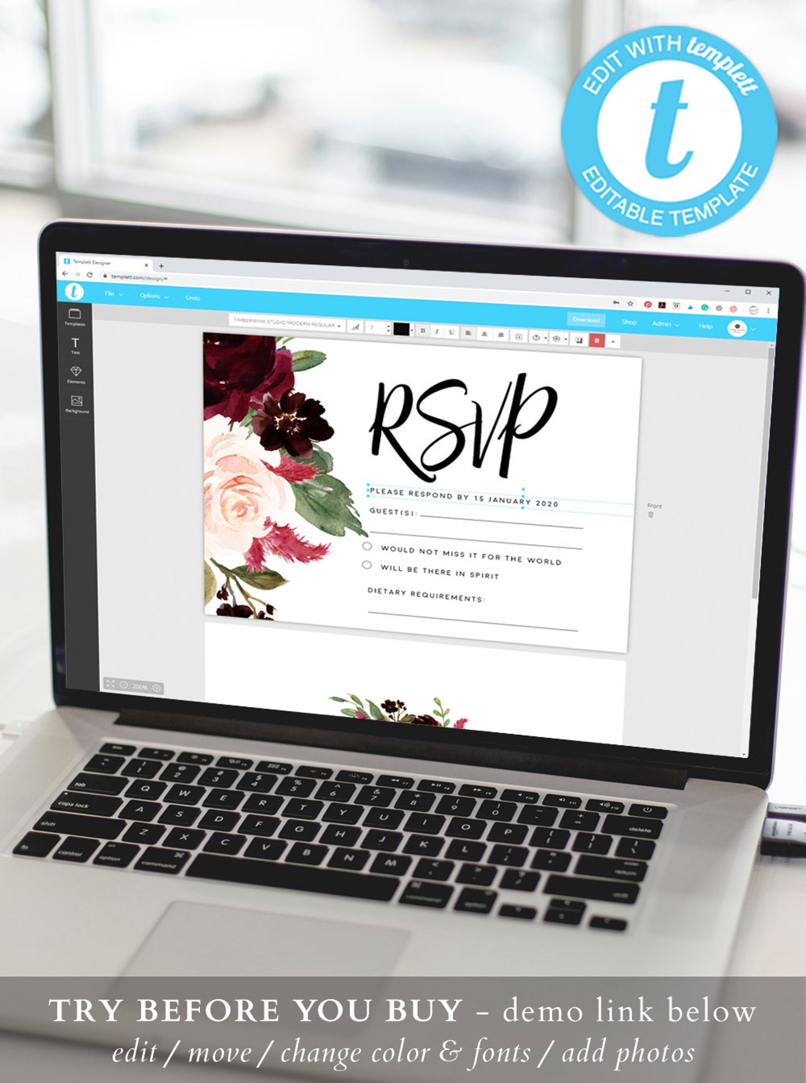 RSVP Card Template Editable Printable RSVP Insert Card Editable