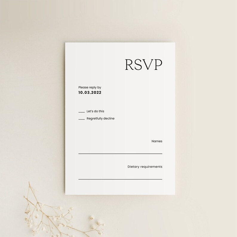 Minimalist Wedding RSVP Insert Card RSVP Card Response for Wedding