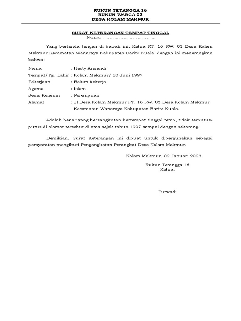 SURAT KETERANGAN DOMISILI RT RW PDF