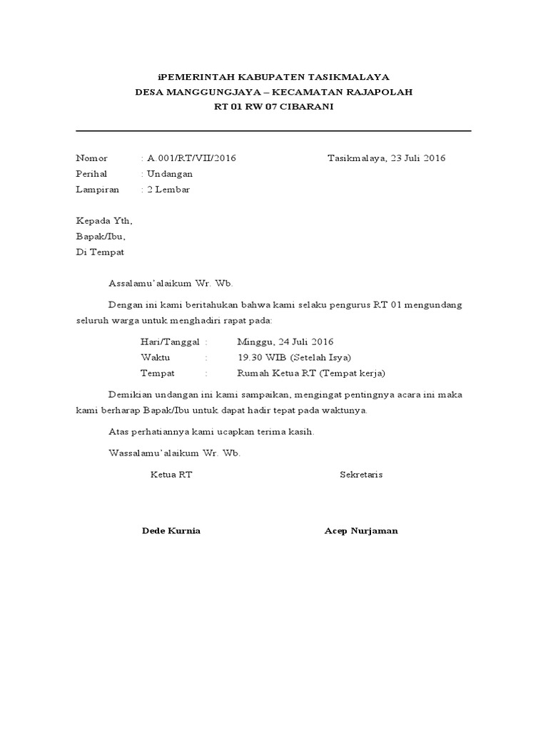 Contoh Surat Undangan Rapat RT Resmi dan Formal Matamu