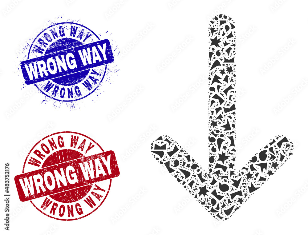 Round WRONG WAY rubber stamp seals with text inside circle forms and