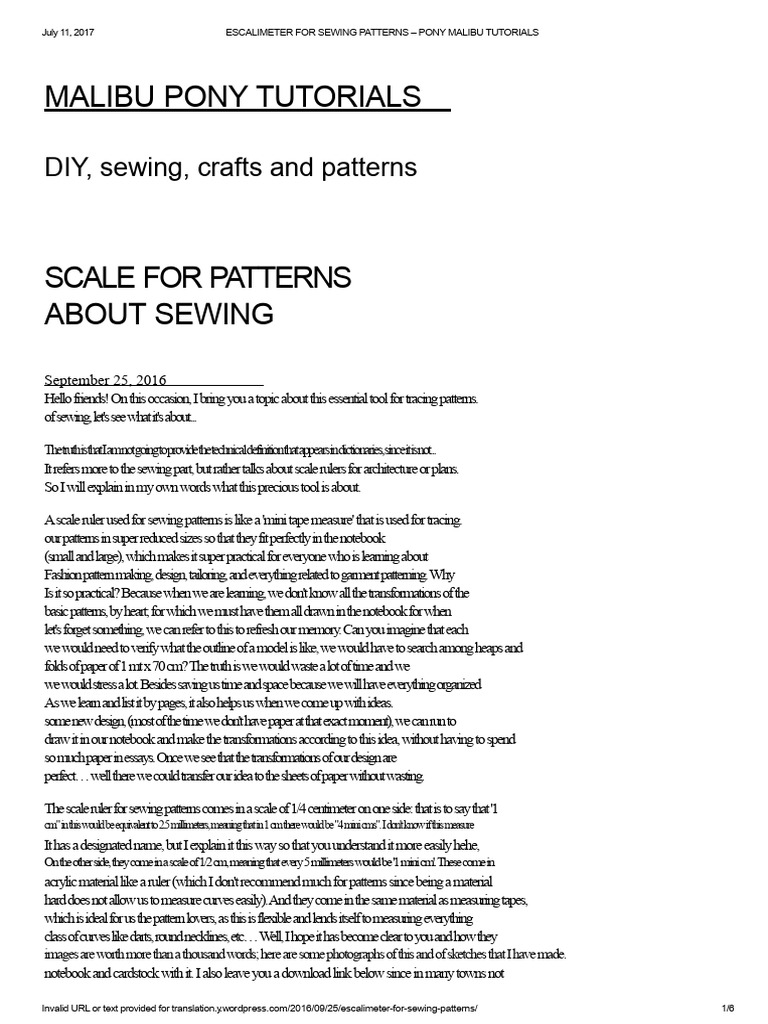 Scale Ruler For Sewing Patterns Pony Malibu Tutorials PDF Sewing