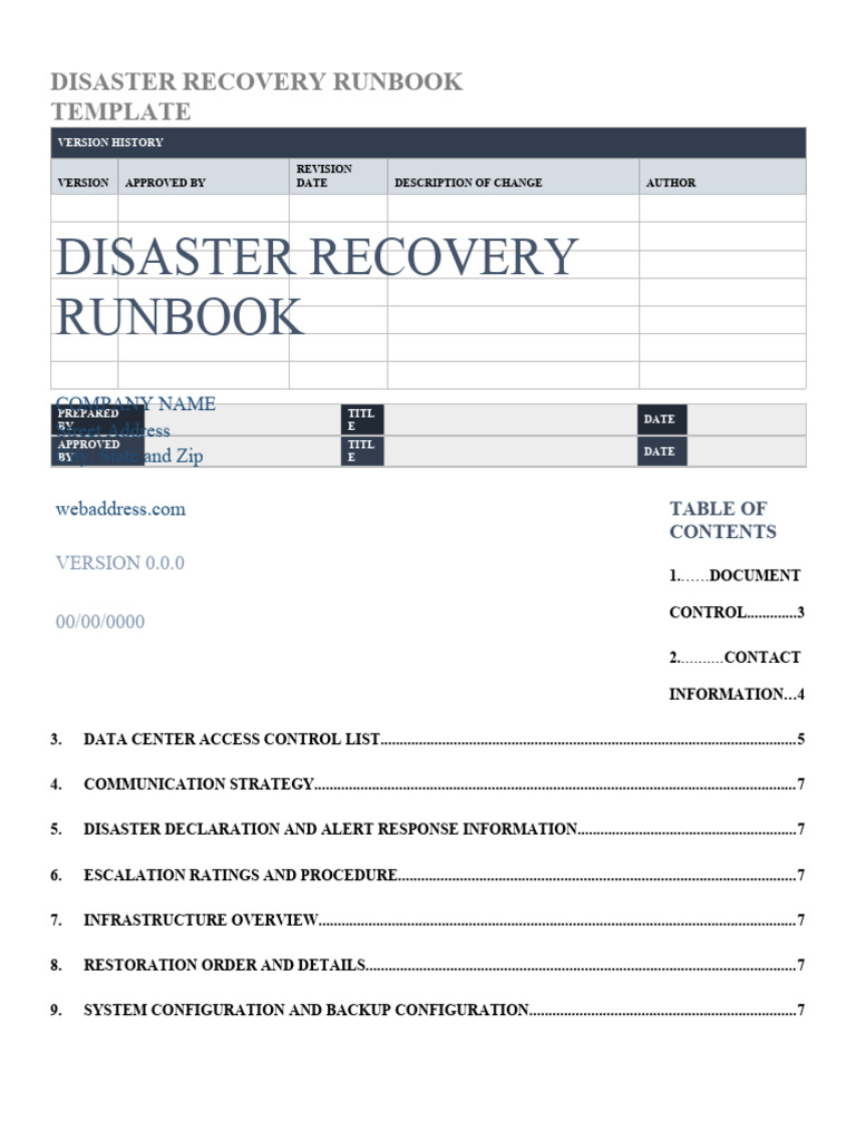 DISASTER RECOVERY RUNBOOK Download Free PDF Disaster Recovery