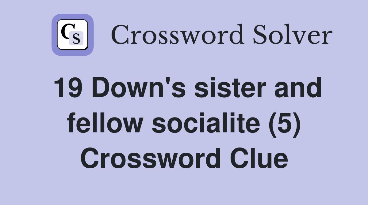 19 Down #39 s sister and fellow socialite (5) Crossword Clue Answers