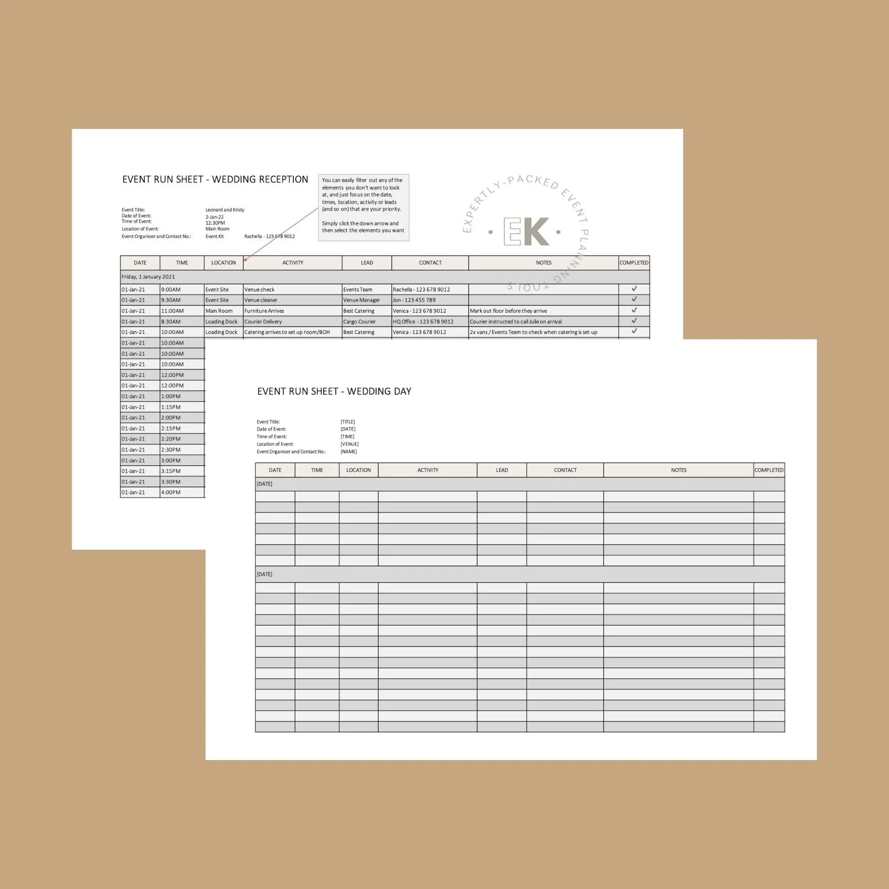 Event Run Sheets Template Bundle Event Kit Award Winning Event Agency