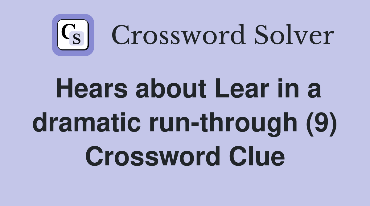 Hears about Lear in a dramatic run through (9) Crossword Clue Answers