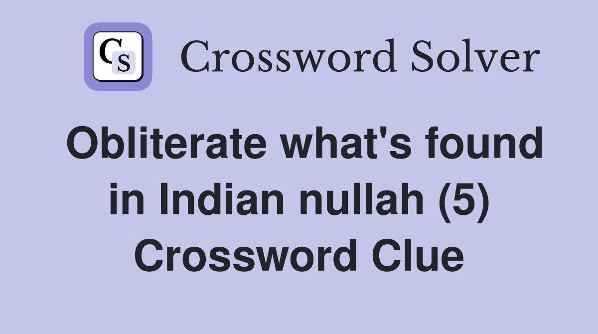 Obliterate what #39 s found in Indian nullah (5) Crossword Clue Answers