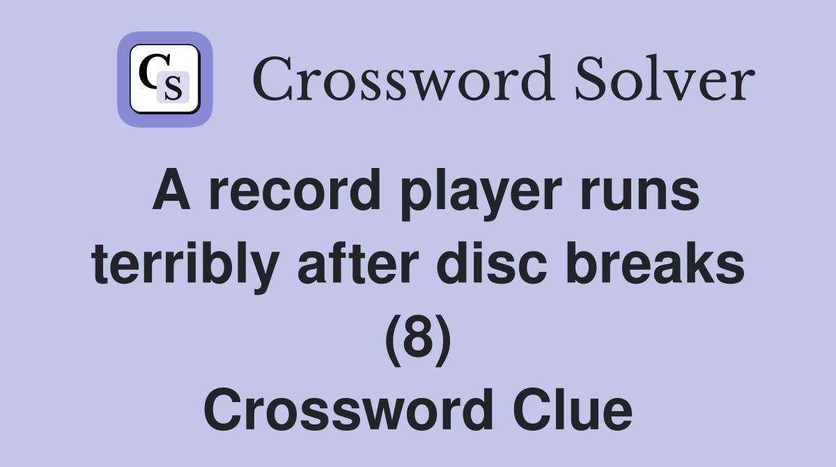 A record player runs terribly after disc breaks (8) Crossword Clue