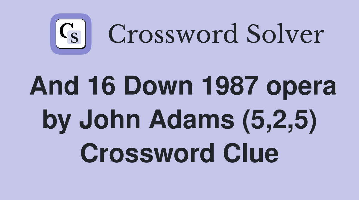 And 16 Down 1987 opera by John Adams (5 2 5) Crossword Clue Answers