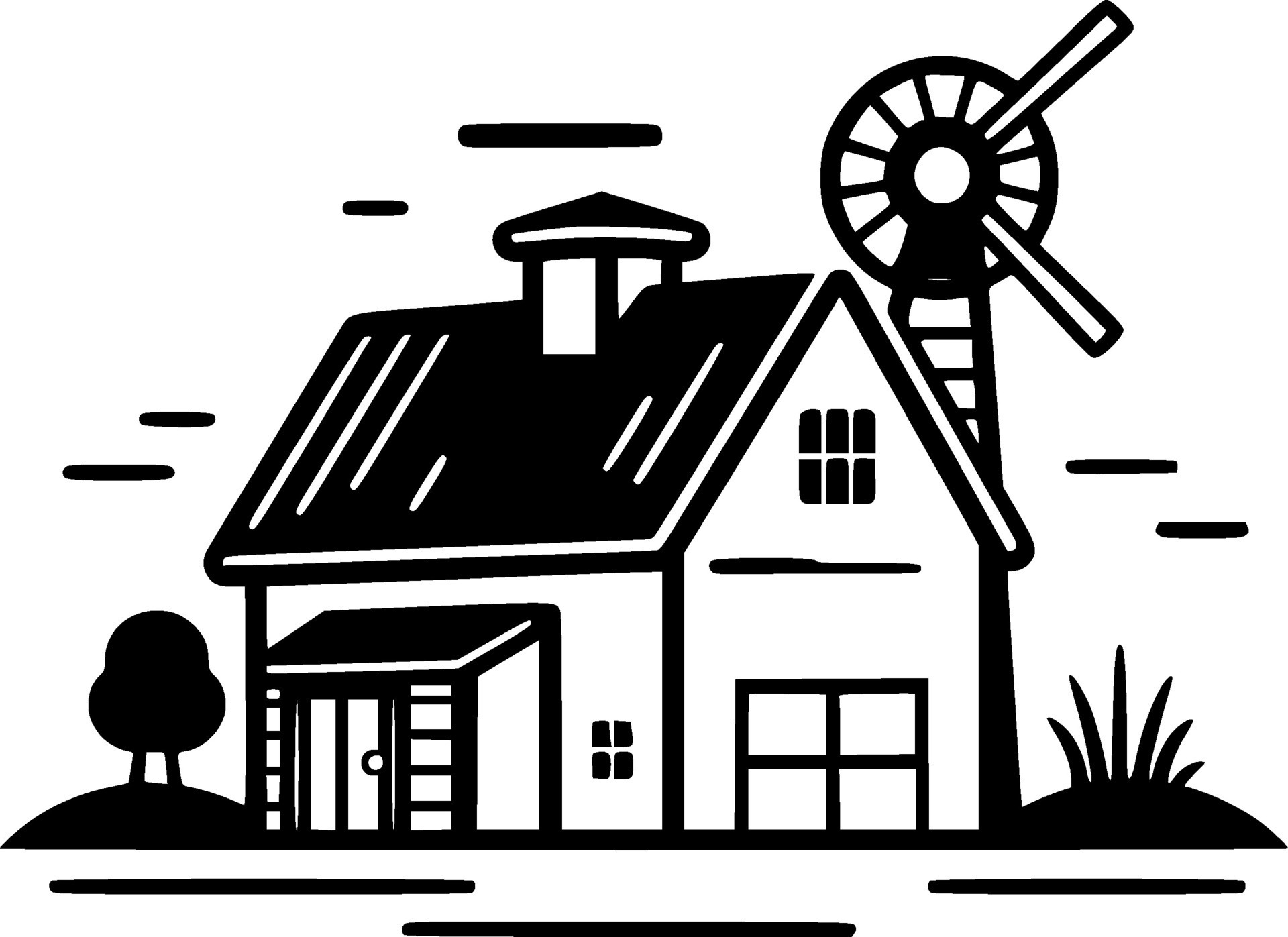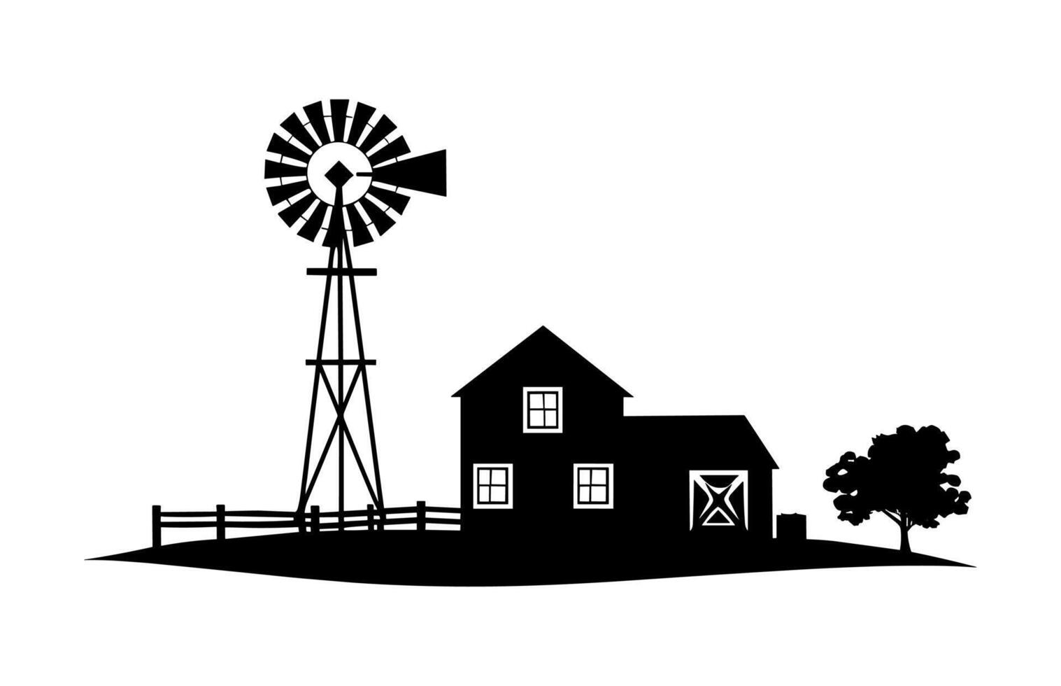 Premium Vector Farmhouse and Windmill Silhouette black Clipart Vector
