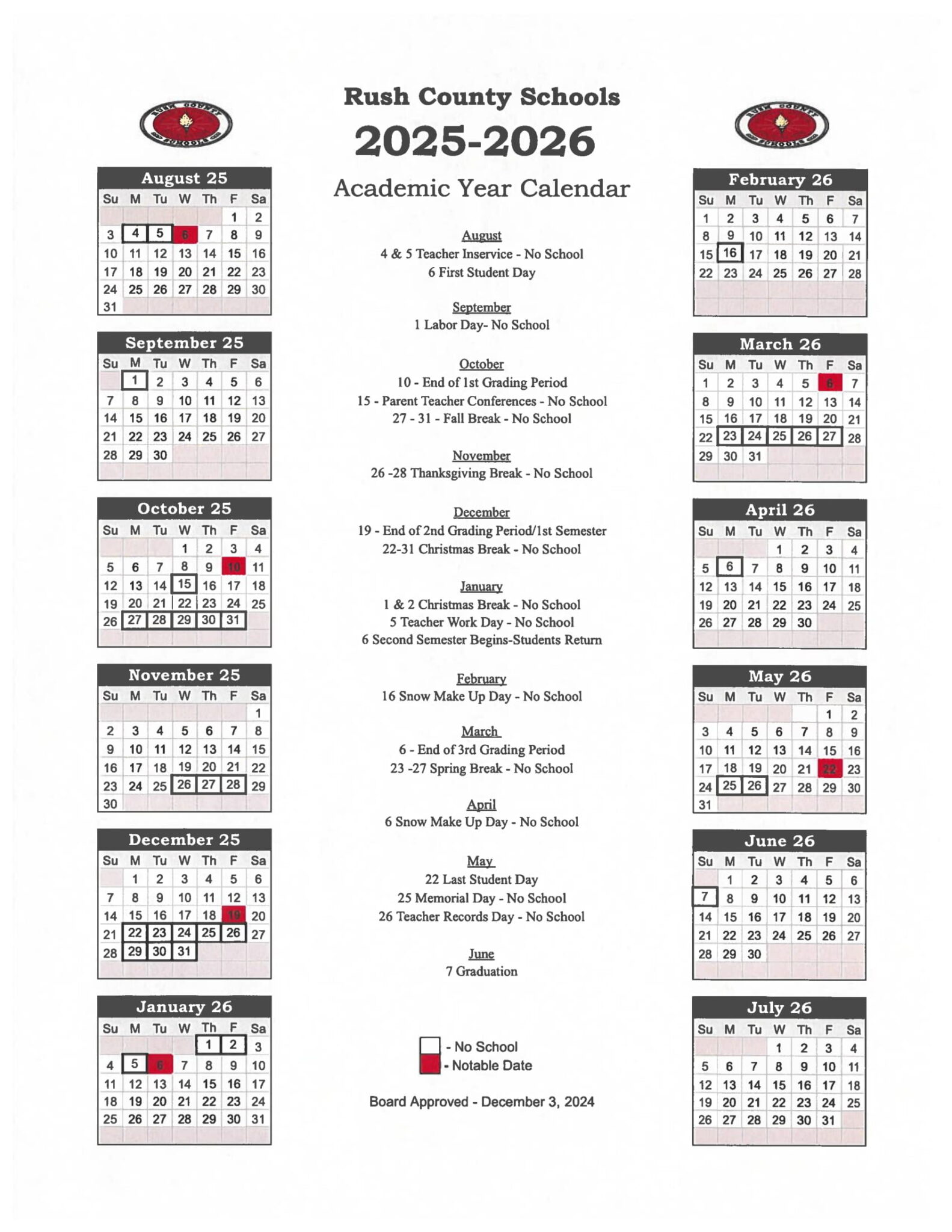 Rush County Schools Calendar 25 26 Revised PDF EduCounty