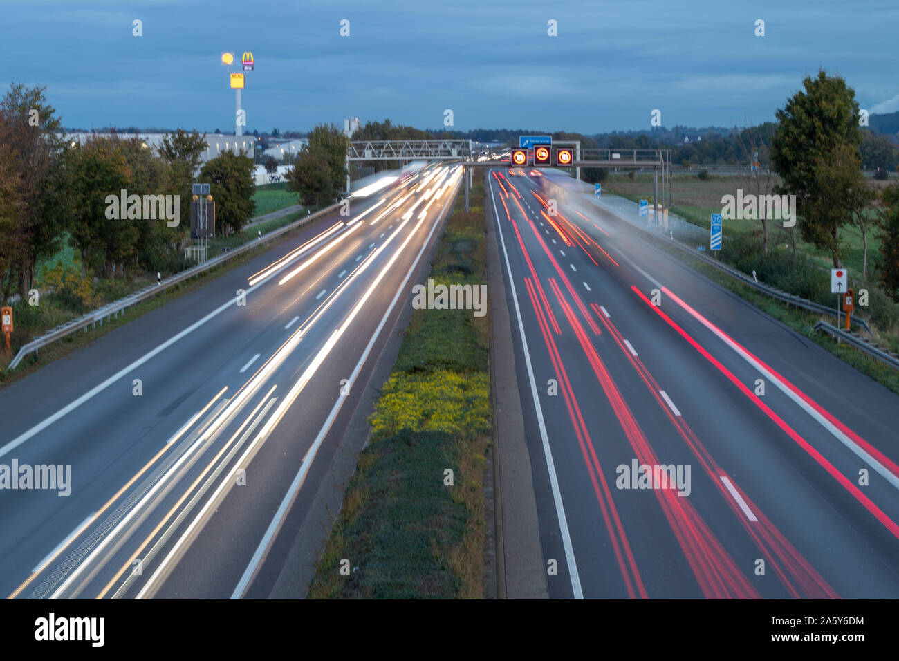 German Autobahn A61 at Dawn Rush Hour Speed Limit 120 Stock Image