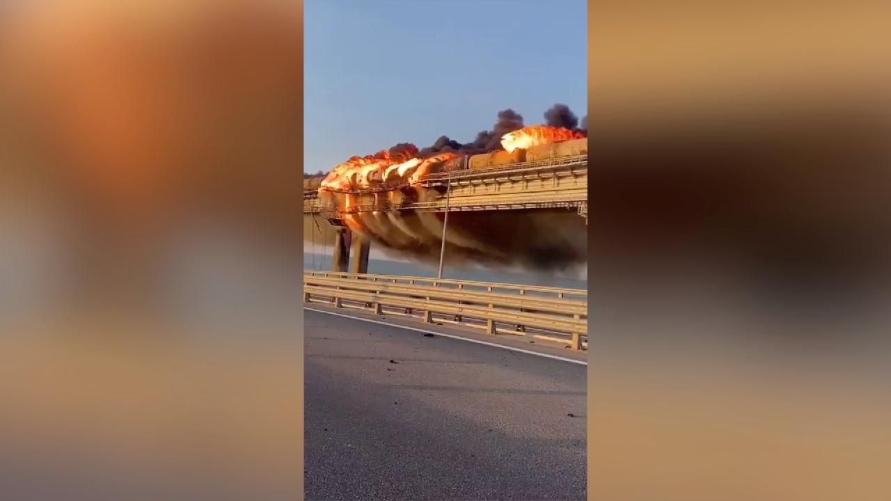Crimean Bridge ablaze following explosion no injuries reported CGTN