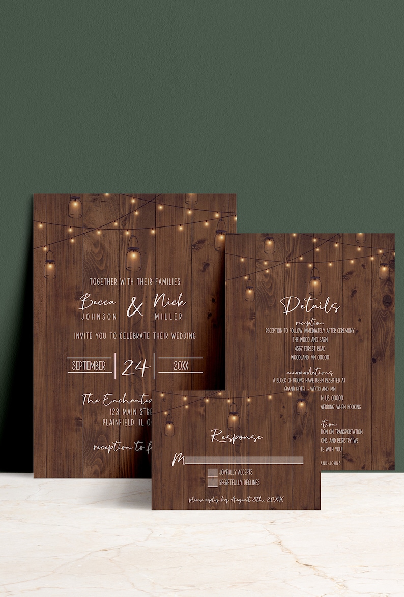 Rustic Wedding Invitation Template Set Includes Invitation RSVP Card