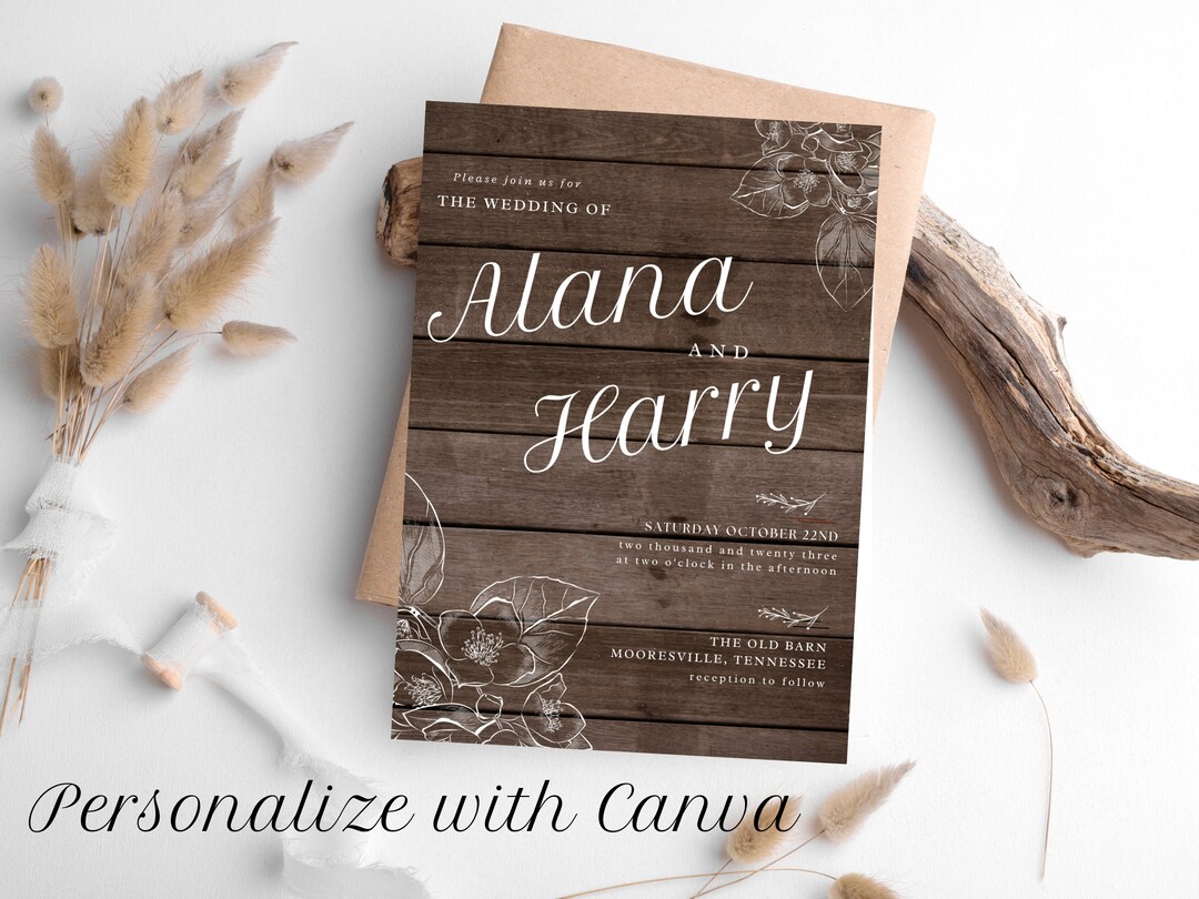 Free custom rustic wedding invitation templates Canva