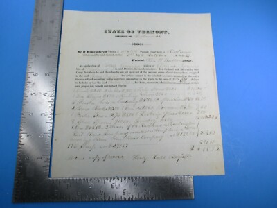 Vintage 1849 State of Vermont District of Rutland Probate Court Letter