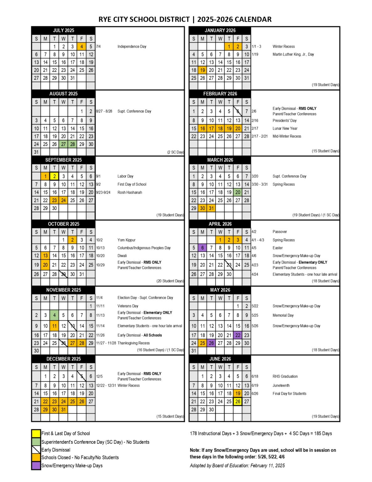 Rye City School District Calendar 25 26 pdf revised EduCounty