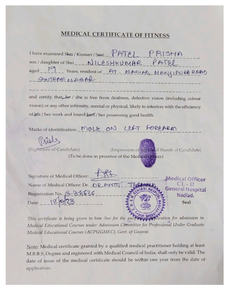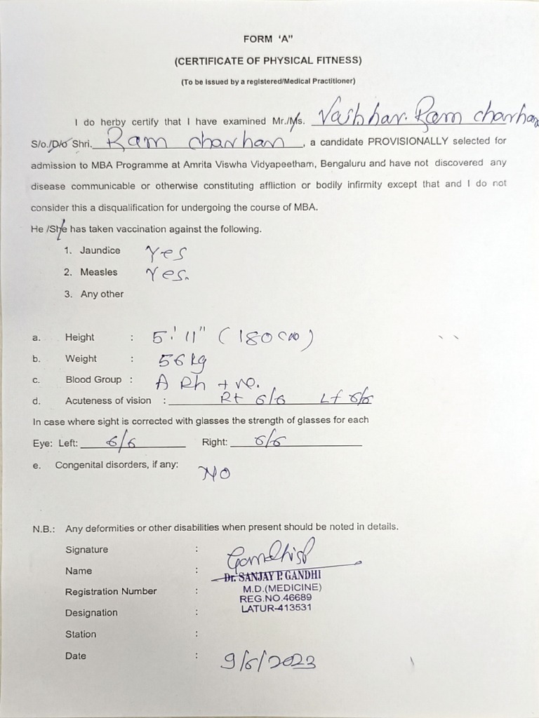Medical Fitness certificate वैद्यकीय प्रमाणपत्र नमुना