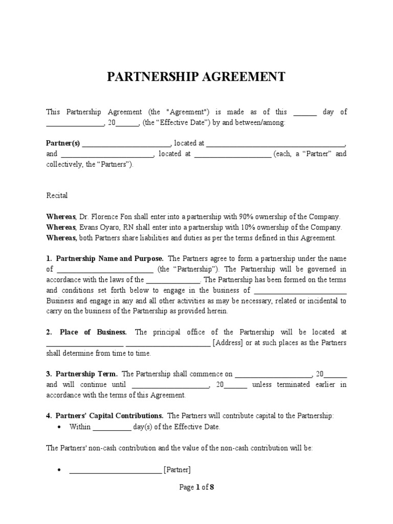 Partnership agreement template free to use