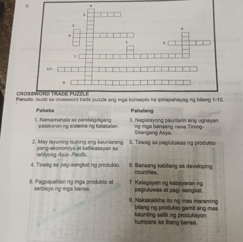 CROSSWORD TRADE PUZZLE Panuto: Isulat sa StudyX