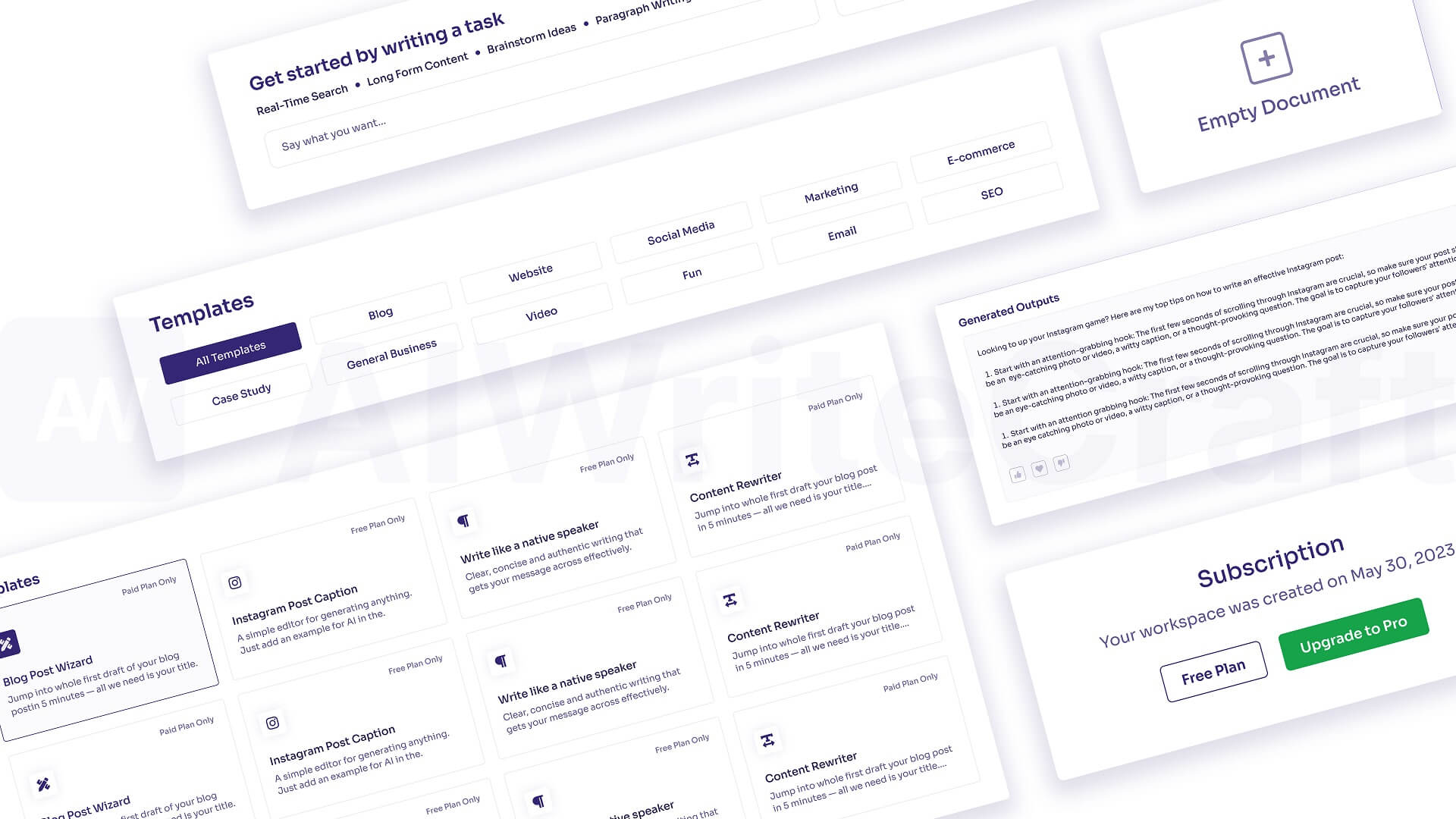AIWriteCraft AI Writing SaaS Dashboard Template