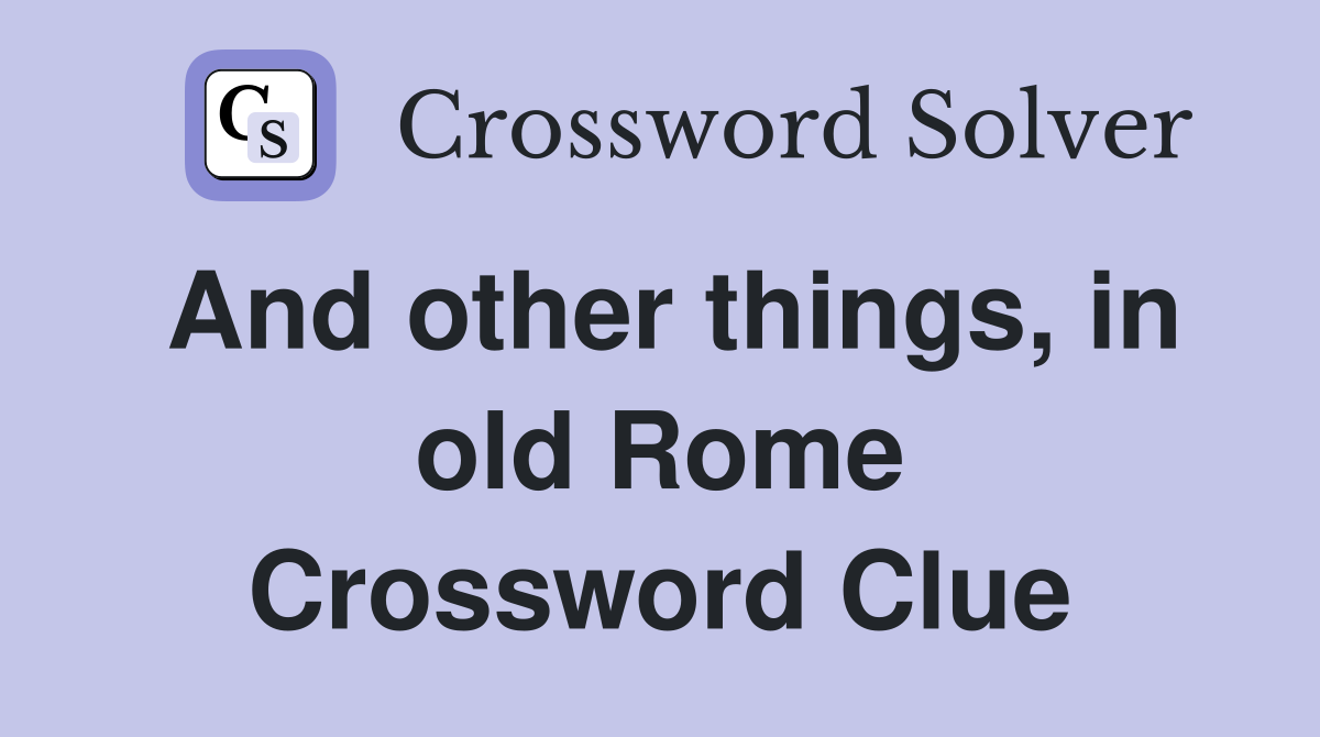 And other things in old Rome Crossword Clue Answers Crossword Solver