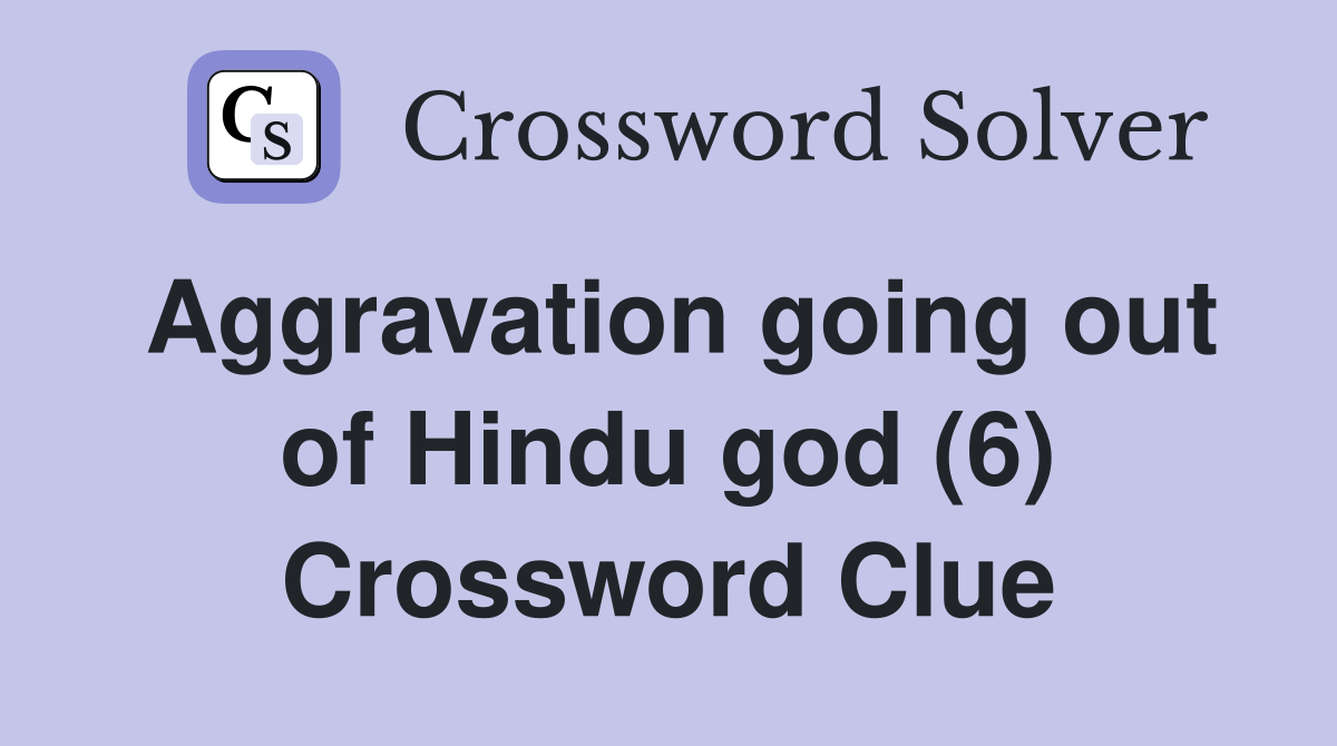 Aggravation going out of Hindu god (6) Crossword Clue Answers