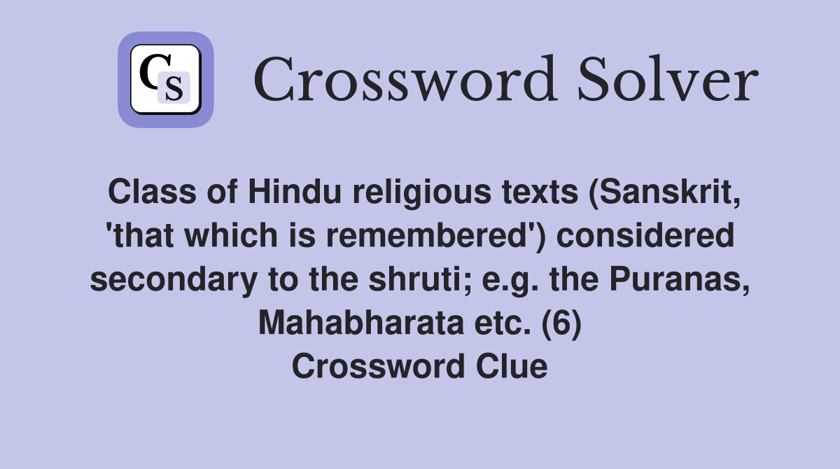 Here are some of the images for Sacred Hindu Text Crossword Clue that we found in our website database.
