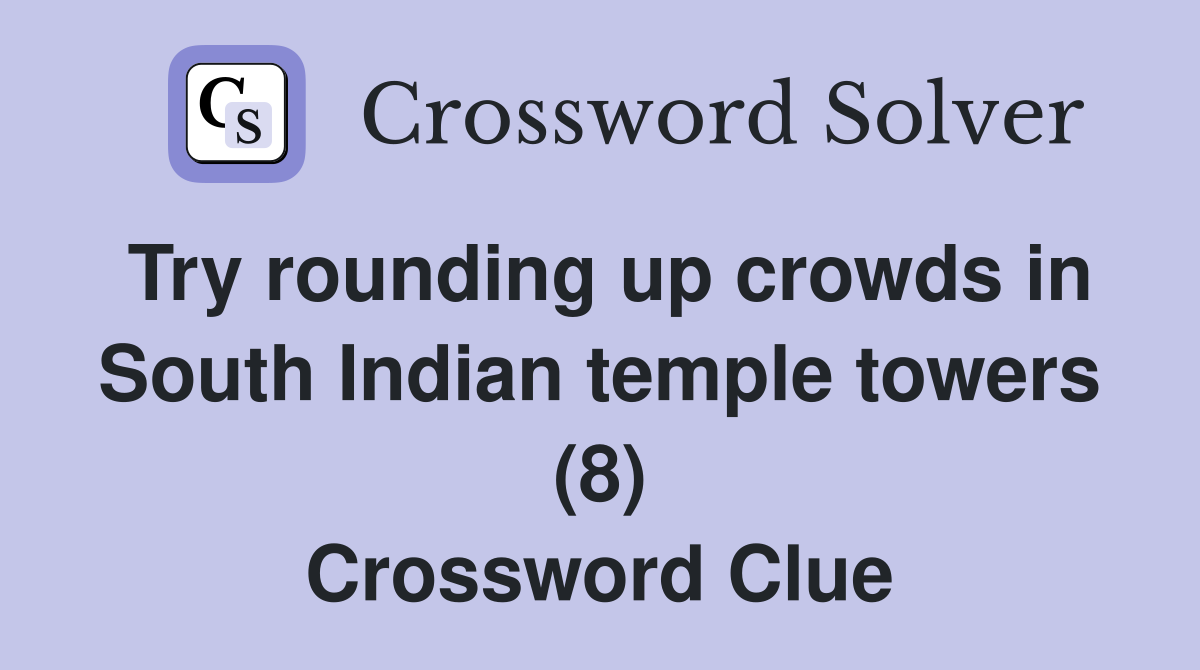 Try rounding up crowds in South Indian temple towers (8) Crossword
