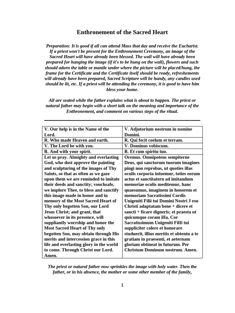 Enthronement of The Sacred Heart of Jesus PDF Lord #39 s Prayer Mercy