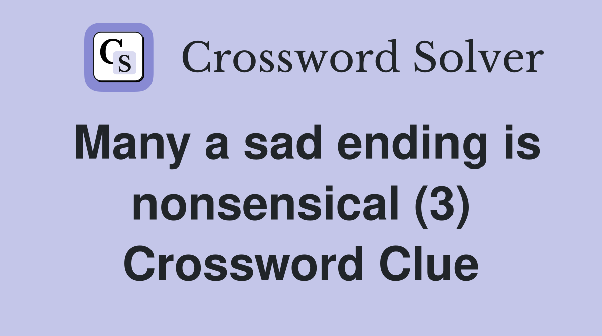 Many a sad ending is nonsensical (3) Crossword Clue Answers