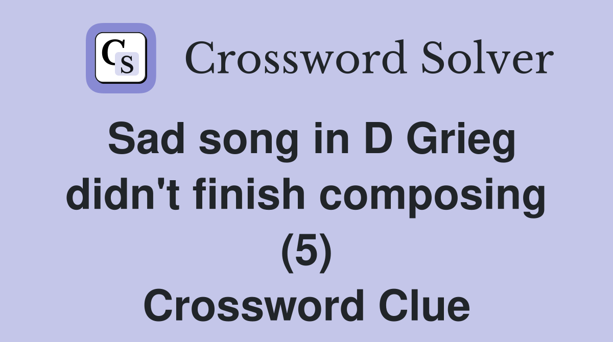 Sad song in D Grieg didn t finish composing (5) Crossword Clue