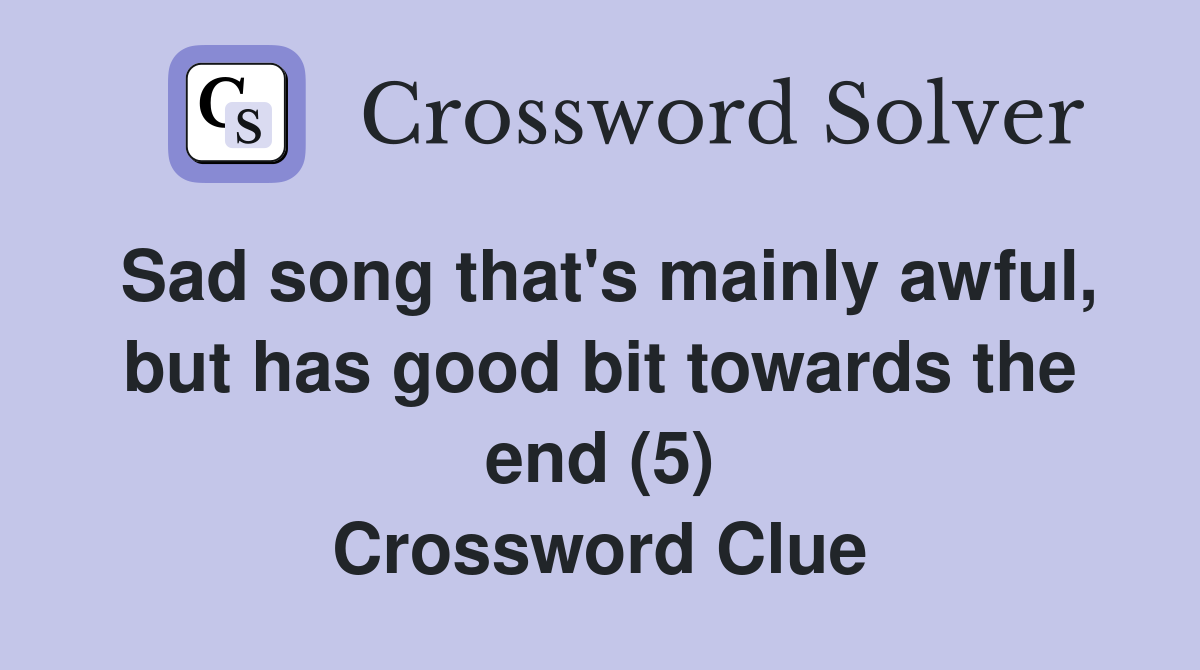 Here are some of the images for Sad Song Crossword Clue that we found in our website database.