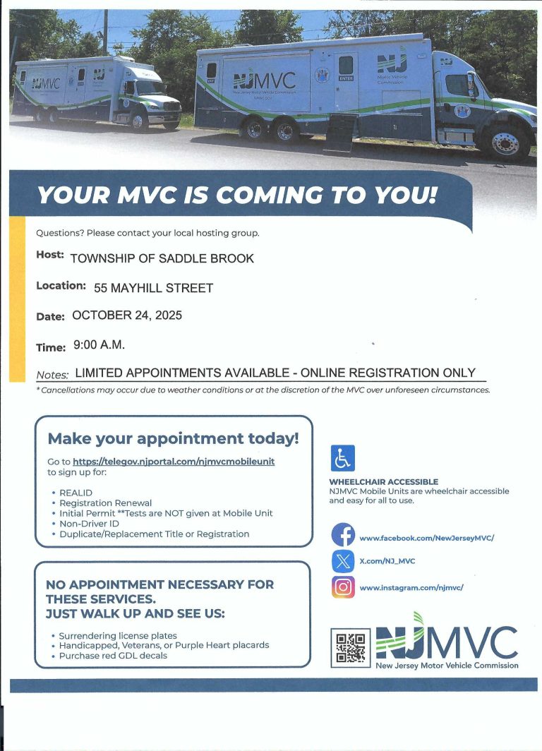 Motor Vehicle Commission Mobile Event Township of Saddle Brook New