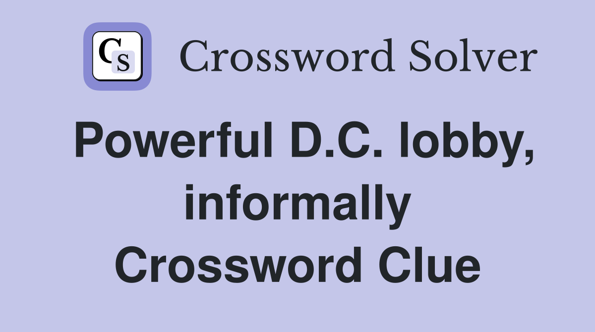 Powerful D C lobby informally Crossword Clue Answers Crossword Solver